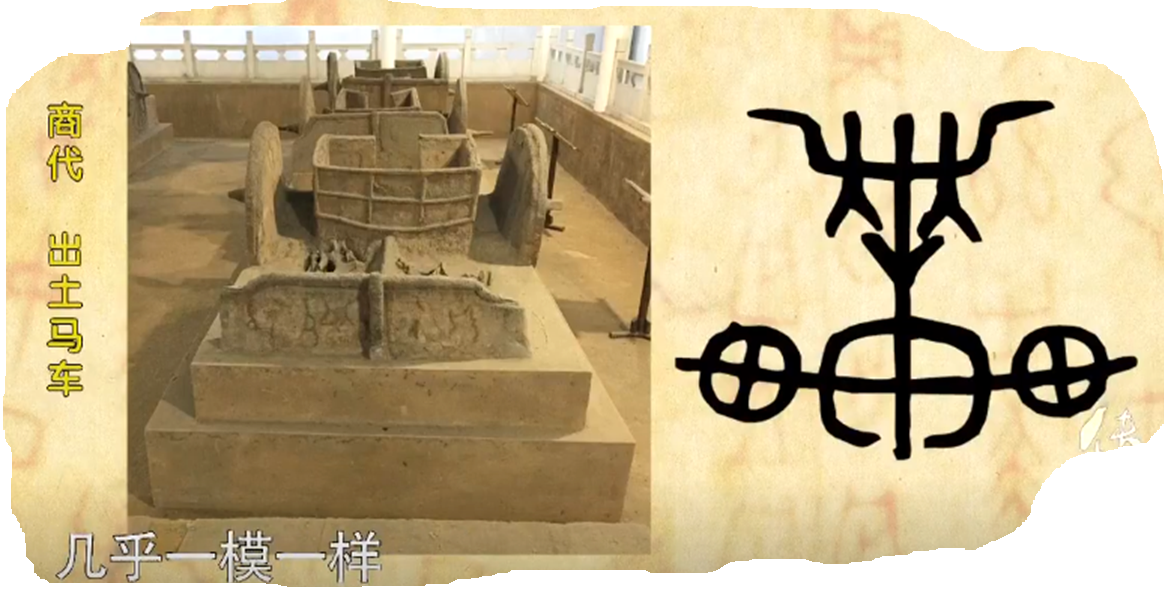 咱们说说车,车是一个独体的象形字。咱们看跟当时的车像不像?