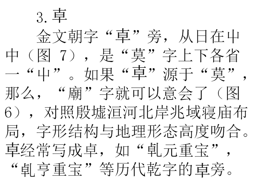 德高为丘。因为上古“爵有德”,爵位越高,封土越高。金文祖字象形,大多作三层尖丘状(图 8⑥),疑最初是指着祖冢,认“祖”归宗。《尚书》开篇曰,古帝尧有大德,光被四表,所以“垚”的本义,无论是字形还是德义都指向封土三成之丘。因为“尧”有文祖庙,《尔雅·释宫》说“庙中路谓之唐”,所以,陶唐、唐尧时期,二成的陶丘、三成的昆仑丘上应该有庙。因为陶唐之丘有水环绕,丘上又有庙,所以,本文推测,陶唐时期,应该有宗祝巫史,有兆域,有祧庙,有兆字。