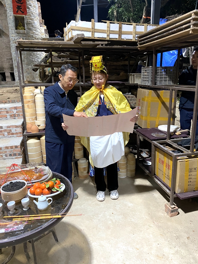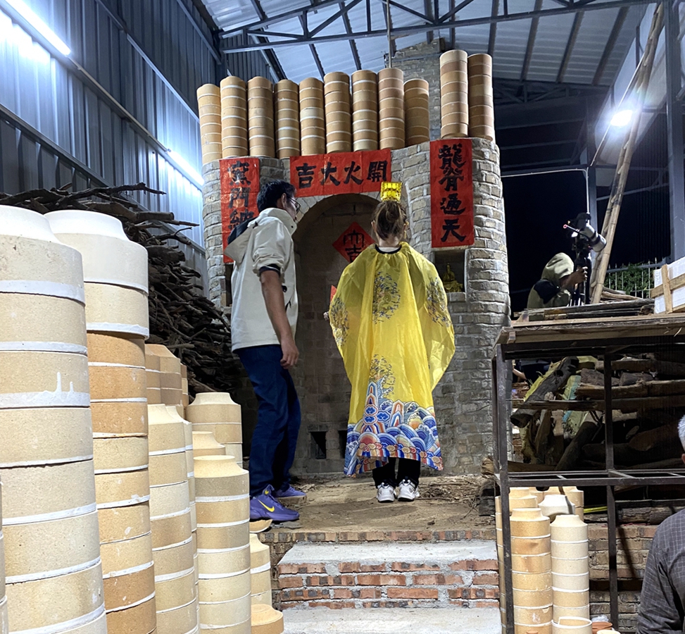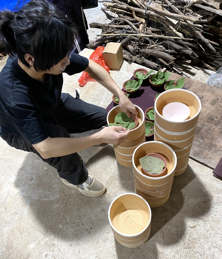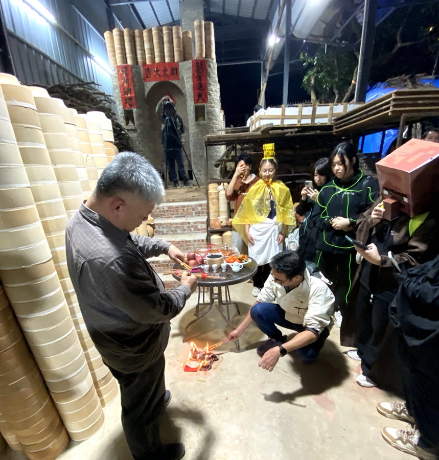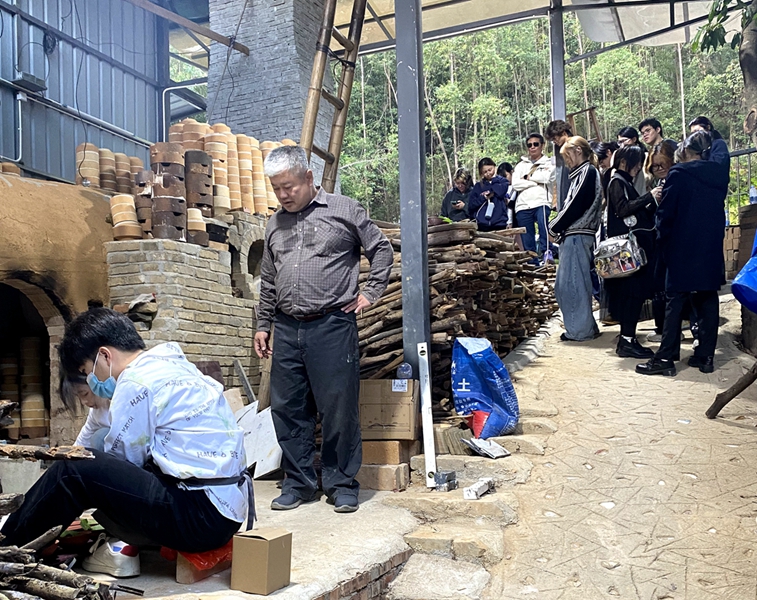 最令人难忘的,是亲手参与的封窑门与点火。窑门渐合,柴火初燃,那一刻仿佛连接起千年窑火与此刻的我们。现场除深圳职业技术大学近三十名师生外,还有惠州本地多位陶瓷爱好者,众人共同凝望跃动的火焰,宛如一场静默的仪式。