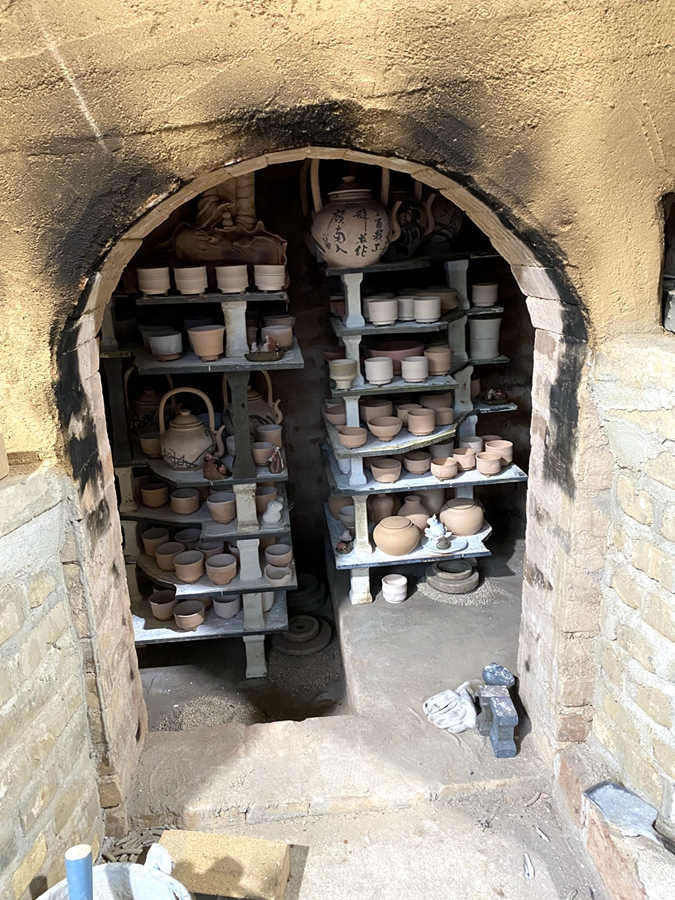 窑室不大,却分区清晰:前、中、后室依温度梯度,承载不同的器物与匣钵。有的密闭,有的为落灰釉留隙,还有专为紫砂设置的炉堂,观察烧炉过程的“火照”等。这座柴窑既承古法,亦融入现代技术,传统与创新在此悄然交汇。