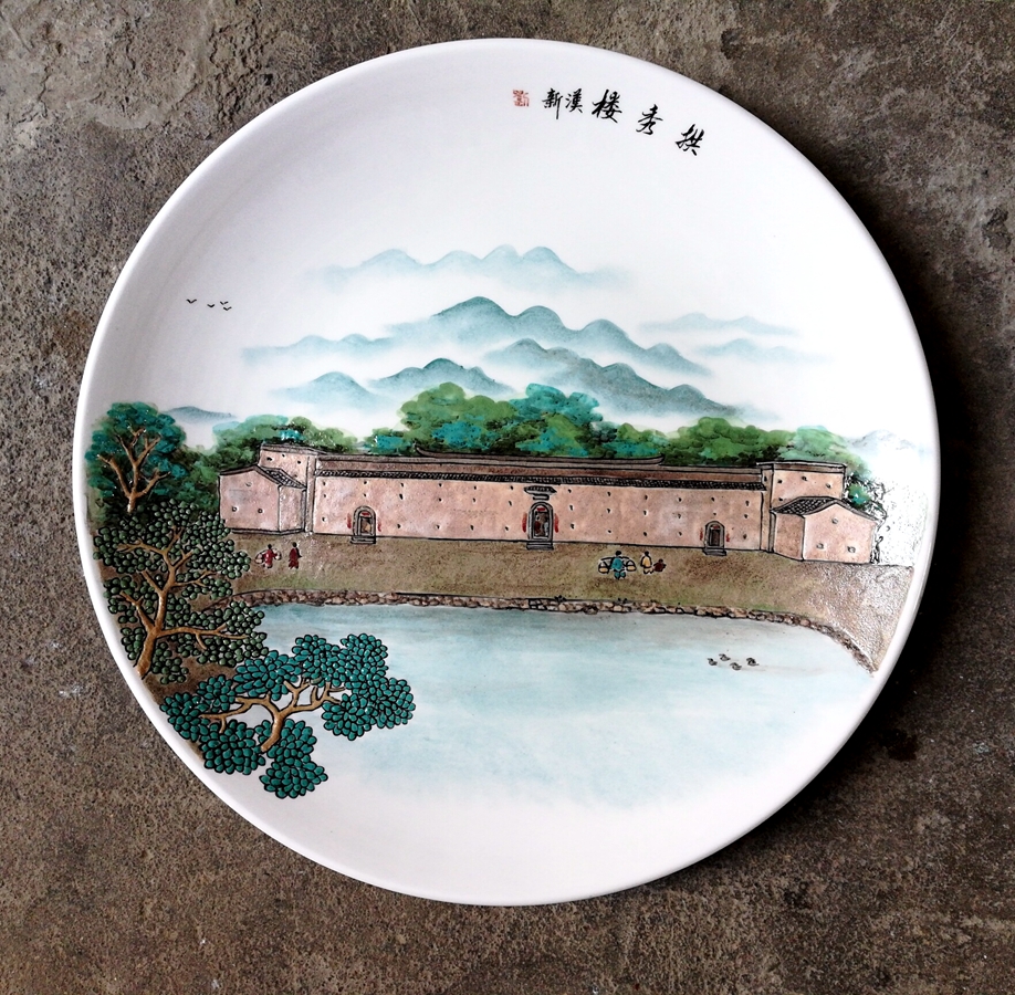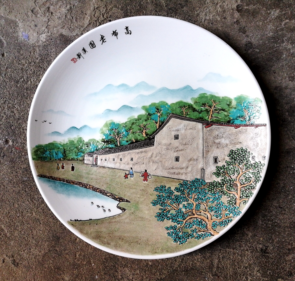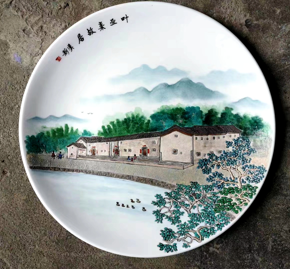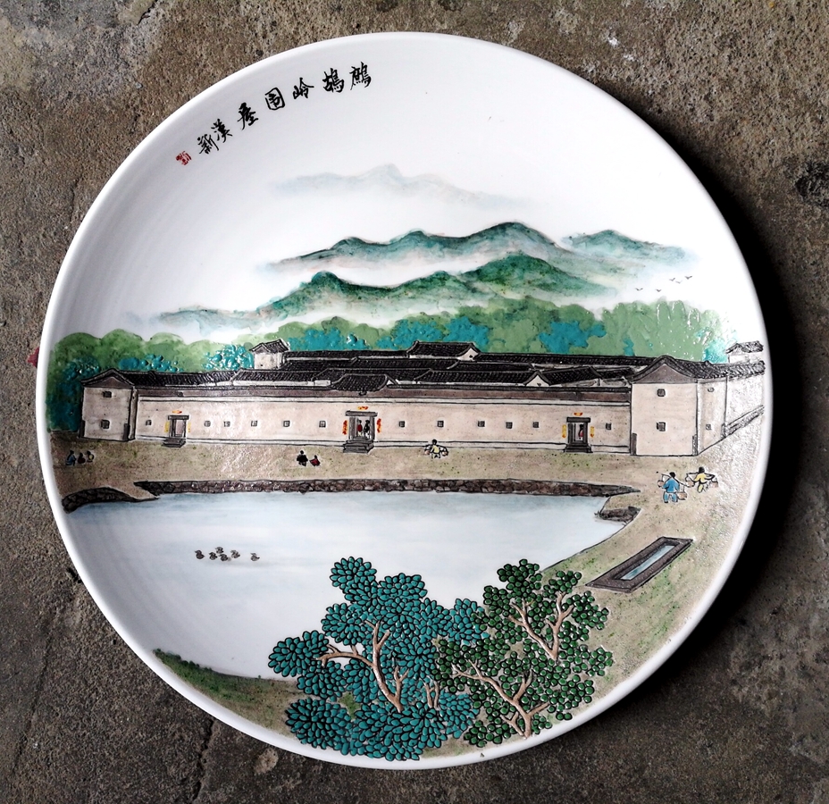 此次给48座秋长客家围屋做彩绘,彩瓷大师:刘汉新用的是五彩东江砂,雨水冲洗后东江边的砂石闪现出原本的色彩,把它们磨成粉,调制成颜料,再一笔一笔画到瓷器上,形成了惠州独有的彩瓷风格。让大家看到,生动的一枝一叶,一瓦一棱,都精雕细琢,韵味古朴。
