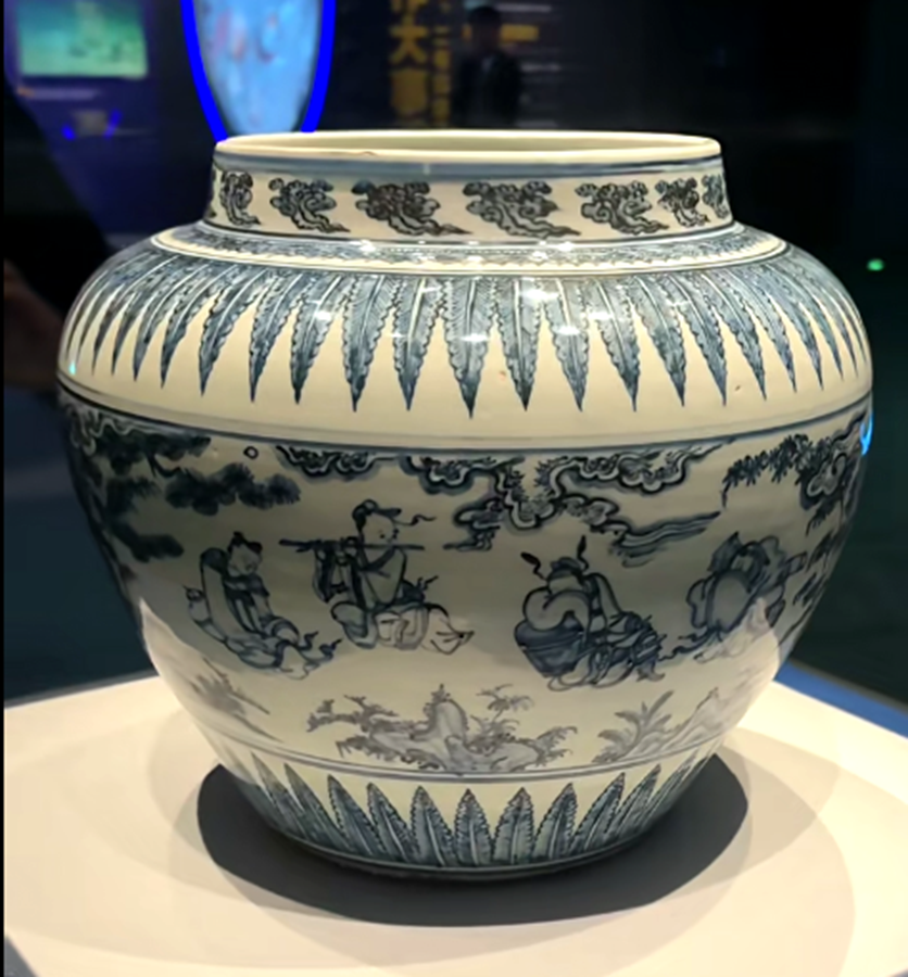另外北京故宫,还有北京海淀的博物馆都有类似的藏品,也被定为成化时期,那么这件罐如果能确定成化,它可能是现存发现的体量最大的一件成化青花人物罐了,非常的难得。