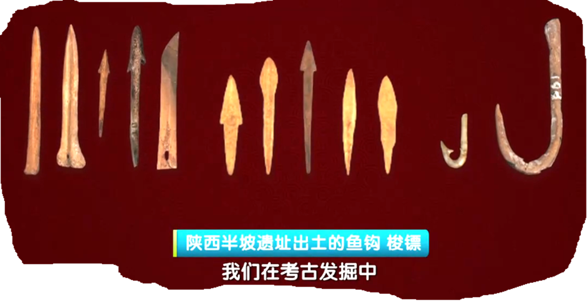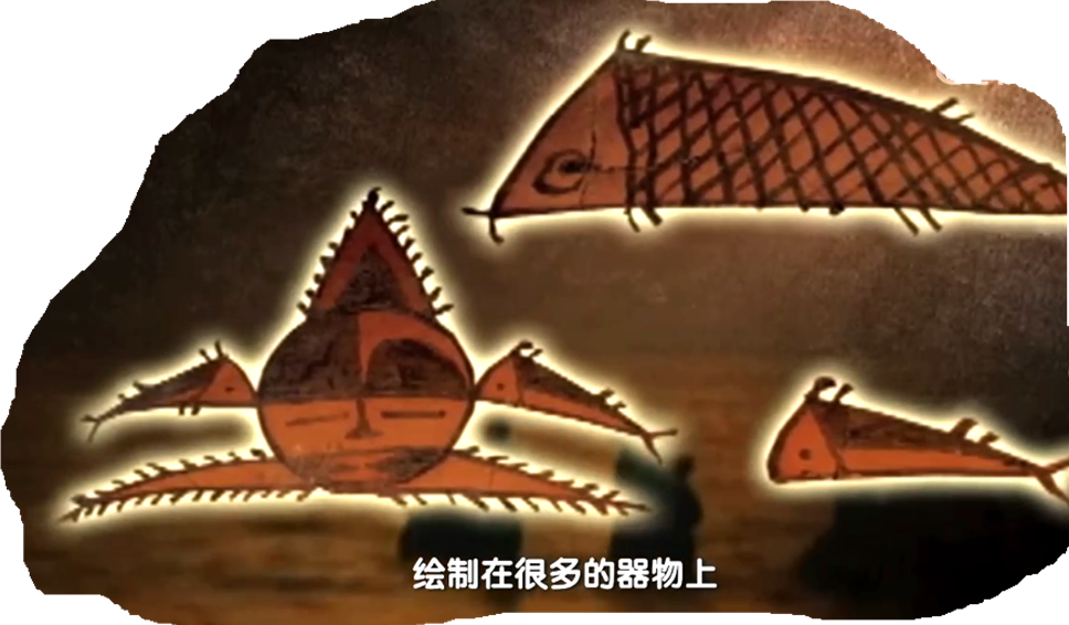 在半坡遗址这个区域里,他们有一个共同的信仰:鱼。鱼为什么重要?就跟半坡类型所在的这个地理空间来考察它,半坡的人,他们住在浐河边的白鹿原上。当时河里边水的流量比现在要大,鱼资源应该是非常地丰富。在遗址出土了大量的鱼钩,梭镖,说明半坡人在定居的情况下,他们依然没有完全放弃渔猎,作为他们生活的补充。因此他们长期地在画鱼,从简单的绘画到非常成熟的绘画,他们画了2000多年。