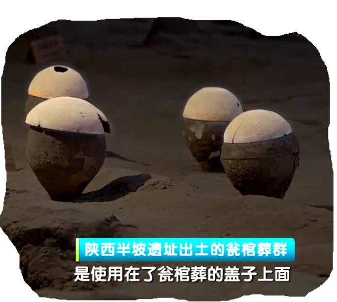 半坡遗址发掘了200多座墓葬,在它的聚落内部还发现了100多座儿童的瓮棺葬,也就是在史前时期,儿童的夭折率是非常高,作为父母,会把这些未成年的孩子的骨骸装在瓮里面,埋在地下,其实是表达了父母以及他的部落的成员,对这个孩子的祝愿。瓮棺葬它是埋葬在房屋的屋前屋后,代表孩子没有离开父母。那么成年人去世之后,他就埋在村子的外面,村子外面的分界线在哪里呢?是村子就有环壕,半坡遗址它的壕沟可以分为内外两重,这时已经出现了瓮城形制。