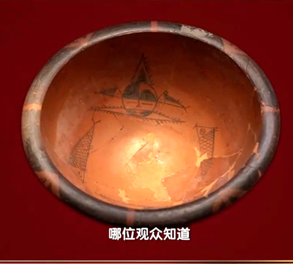 人面鱼纹图案在很多器物上都有发现,特别是绘制在这种盆的内侧,那么,这个器物又是做什么用的呢?其中一部分很重要的是使用在瓮棺葬的盖子上面。